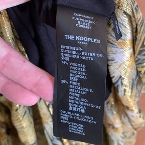 The Kooples Paris gold metallic floral print midi skirt with gold threading throughout. Buttoned front with slit and fitted waist. Back zipper closure and black lining to top of slit. Viscose material. NEW condition