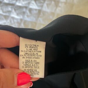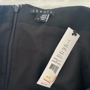 This classic black pencil skirt from Theory is designed for a polished work look. Its knee-length cut and sleek silhouette offer a sophisticated style, perfect for professional settings. The solid black color and refined design make it a versatile wardrobe staple.