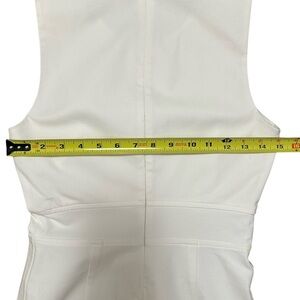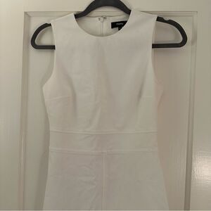 Theory Raneid sleeveless dress in white. Features a tailored silhouette with seamed waist detailing and paneled construction for a structured fit.