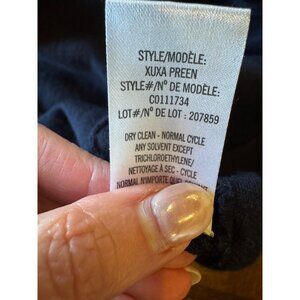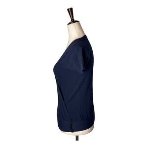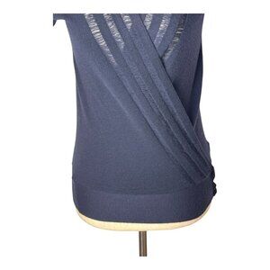 Theory Sweater Women XS Navy Blue Wool Knit Wrap Fringe Detail Luxury Preppy