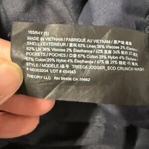 Theory Treeca Jogger in Eco Crunch Wash Linen Blend Navy Blue Small