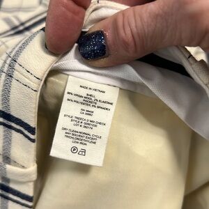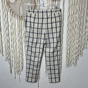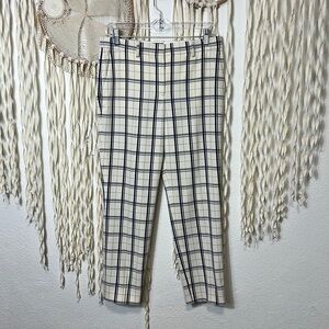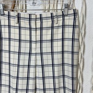Theory Tribeca Trouser in Cream and Blue Plaid Print Size 4
