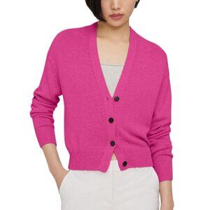 V-cut neckline and button front closures. Finished with rib knit details in a fine blend of cotton and cashmere