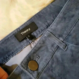 Theory Washable Stretch Genuine Suede Leather FivePocket Cropped Pants Blue Lamb