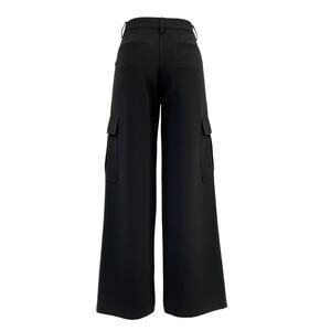 Theory Wide-Leg Black Triacetate Cargo Pant Size 4: mid-rise, designed for a wide-leg fit, mid-weight, slightly stretchy fabric, concealed zip fly with button closure, cargo pockets, side pockets.