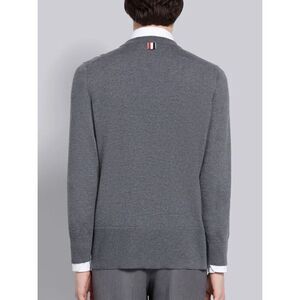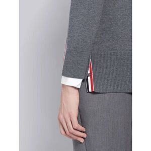 EUC - Thom Browne medium grey Merino Wool jersey stitch tricolor intarsia stripe crewneck pullover sweater