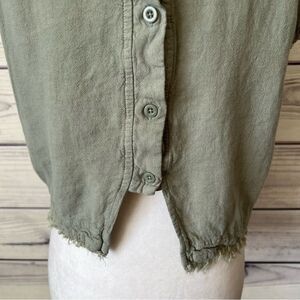 Thread & Supply Linen Sage Green Frayed Hem Button Crop Top