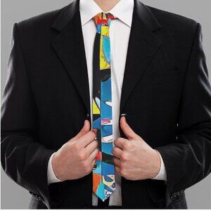 Tie Designer Menswear Necktie Mid Century Patchwork Blue Modernist Abstract Art