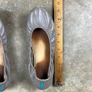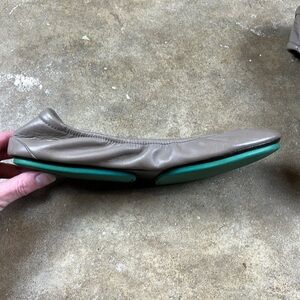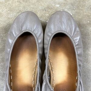 Experience the perfect blend of comfort and style with these Tieks tan leather ballet flats. Featuring a soft, gathered leather upper and a flexible, foldable design, these shoes are ideal for easy wear and all-day comfort. The elastic gathering around the edges ensures a snug fit, making them a versatile addition to any wardrobe.