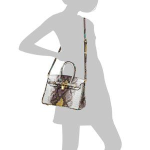 Top-Handle Satchel/Shoulder Bag with a Foldover Flap & a decorative Lock, All in a beautiful Multi-Color Snake Pattern .