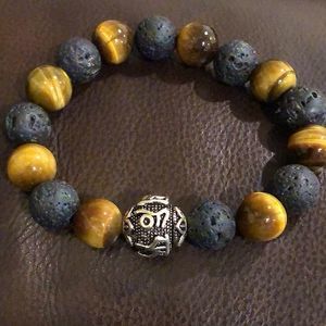 Tigers Eye, Lava and Sterling Silver Bracelet
