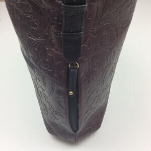 Tignanello Classic Beauty Genuine Leather Brown Tooled Embossed Handbag Hobo Bag