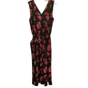 Time and Tru Women's Tank Jumpsuit Size L Black Red Floral