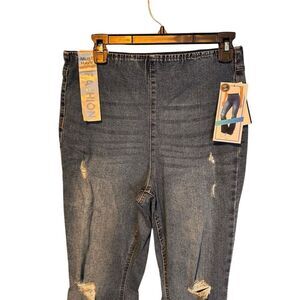 Keywords: Tinseltown jeans, flared jeans, high-rise, distressed denim, stretchy jeans, women's jeans, blue jeans, pull-on jeans, casual wear, machine washable.