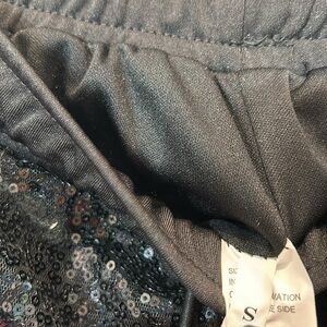 Tipsy Elves Black Sequin Relaxed fit jogger pants with side tuxedo stripe small