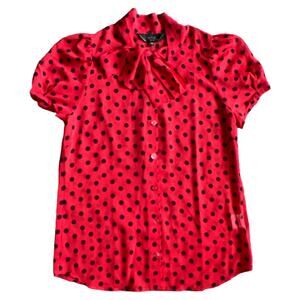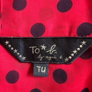 To B by Again B Red Polka Printed Short Sleeve Sheer Top, S