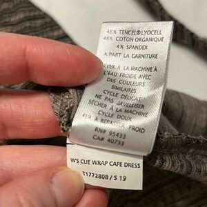 Toad & Co faux wrap dress with waist tie. Pattern is a tan and black geometric pattern with small circles. From my personal closet, only worn once or twice so still in like new condition with no flaws. Please see photos for measurements.