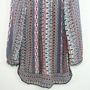 Tolani NATASHE Gray Red 100% Silk Tribal Western Ethnic Print Long Sleeve Flowy Tunic Blouse /Mini Dress