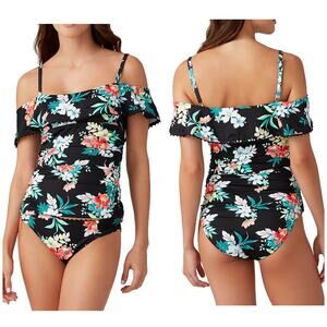 Tommy Bahama Floral Springs Flounce Tankini Top Swim Size XS