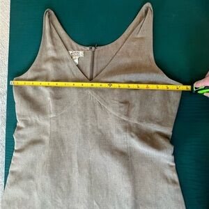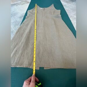 Tommy Bahama Linen Blend Dress Size 12 Beige / Gray Silk Lining V-Neck Back Zip