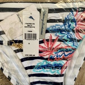 Tommy Bahama Palms of Paradise Embroidered String Bikini Bottoms in Navy/White