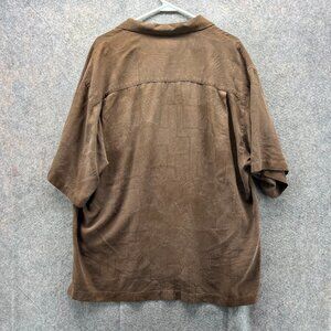 Tommy Bahama Shirt Men XL Brown Button Down Reverse Dress Silk Pocket Camp Palms
