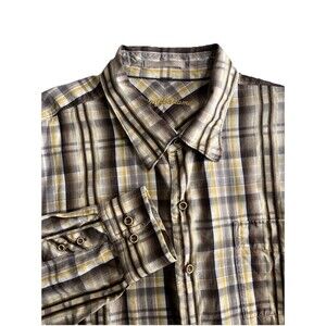 Tommy Bahama Shirt Men XXL Beige Plaid Check Long Sleeve Button Down