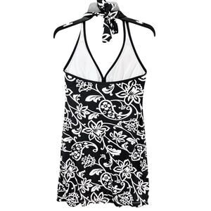 Tommy Bahama Spa Dress Womens M Black White Scroll Halter Cup Cover Up Resort