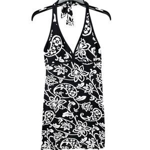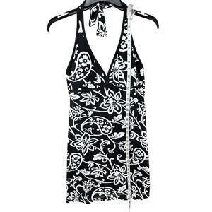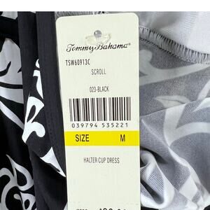 Tommy Bahama Spa Dress Womens Size M Black White Scroll Halter Cup Cover Up Summer