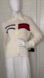 Stylish cream cardigan featuring bold red and black stripes. Perfect for a chic look in good condition.