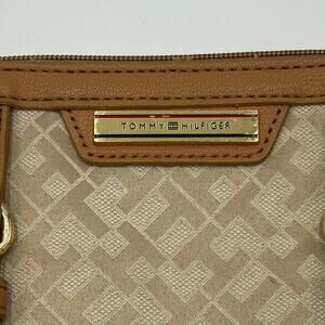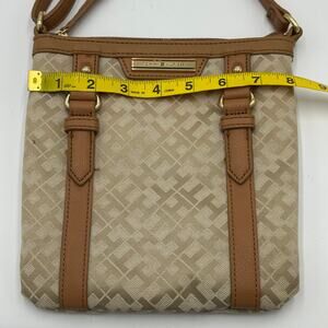 Tommy Hilfiger Beige & Brown Allover Monogram Canvas Crossbody Bag Purse Zip