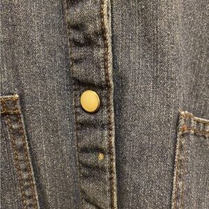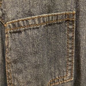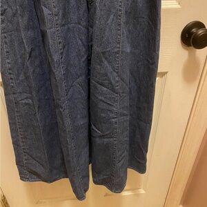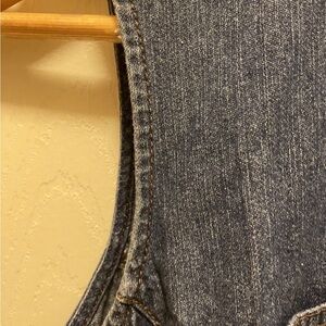 Chic and versatile denim sleeveless dress perfect for casual outings. Features a classic collar and button-down front. Ideal for a stylish, laid-back look. GUC!