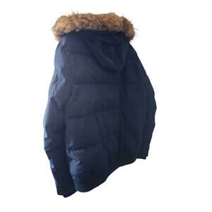 Tommy Hilfiger Men’s Puffer Jacket XL Faux Fur Hood Winter Coat Logo Patch