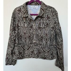 Tommy Hilfiger Paisley Print Jacket Shacket Button Down Brown Women's Sz XL