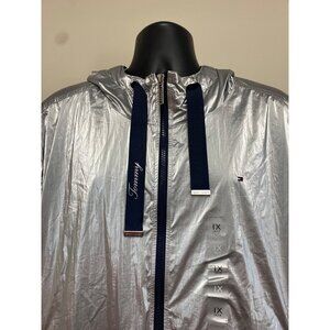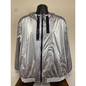 Tommy Hilfiger Women's Silver Zipper Hooded Metallic Windbreaker Plus Size 1X NW