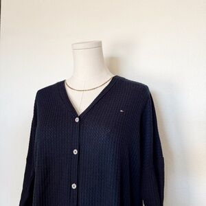 Tommy Hilfiger Women’s Waffle Knit Lightweight Tie Front Blue Cardigan Size M