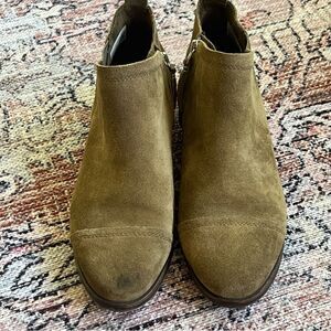 Toms Reese Olive Green Suede Ankle Boots Side Zipper Size 8.5