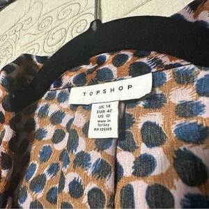Topshop Animal Smudge Print Balloon Sleeve Satin Top Blouse Top Size 10 Workwear