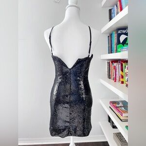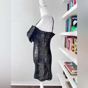 Torn by Ronny Kobo Black Sequin Silk Bow Slip Strapless Mini Dress size small