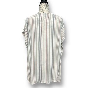 Description: Soft and effortlessly chic, this Torrid 2X ivory striped crepe blouse features a flattering dolman sleeve, tie-front detail, and flowy V-neck for all-day comfort and style.
