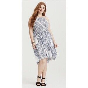 Torrid Challis High Neck Sun Dress Blue White Floral Midi Fit & Flare Picnic 2X