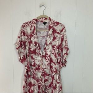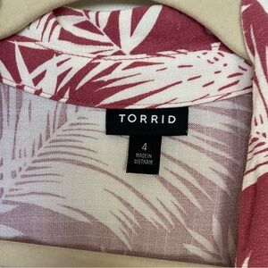 Torrid Collared Dress shirt Dress Size 4X Shaded Palm Button Front Rayon Pink