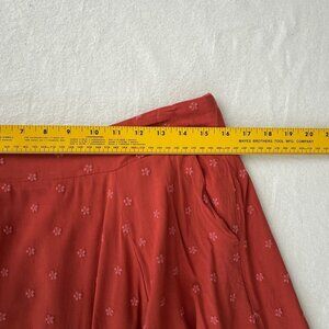 This embroidered coral skirt from Torrid offers a stylish and comfortable fit with its soft rayon base. Ideal for casual or workplace settings.