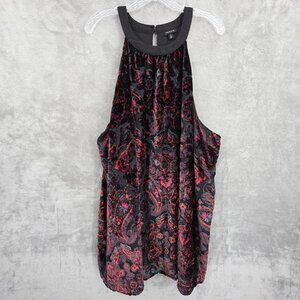 Torrid Halter Tunic Tank 4 Burnout Velvet Paisley Black Red Whimsy Goth Witchy