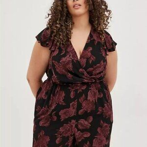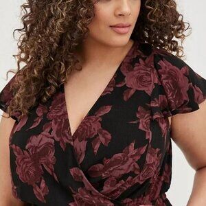 Torrid Plus Size 2 Black Red Floral Gauze Tie Back V Neck Shorts Romper 18-20