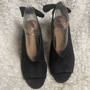 Torrid synthetic Black suede Peep-Toe sling back heels with bow accent SZ10W. Pre owned in good used condition normal wear. See all pictures. L4