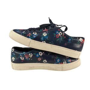 Tory Burch Amelia Floral Print Leather Sneakers Blue Multi-Color Sneakers 8.5M