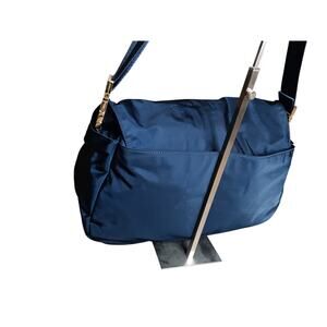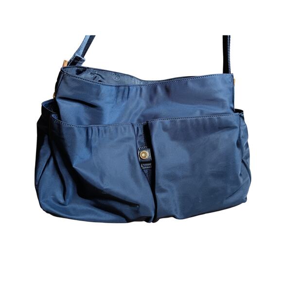 Tory Burch Billy Nylon Messenger Diaper Bag Blue Crossbody Adjustable Logo Tote
