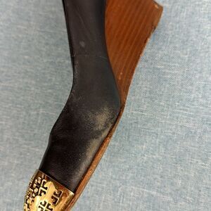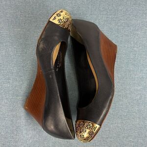 Tory Burch Gold And Navy Blue Leather Wedge Pumps Size 5
