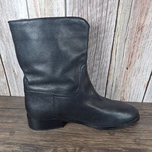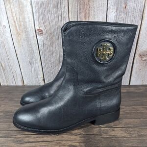Tory Burch Hallie Mid Shaft Logo Black Leather Riding Boots Women's Sz 9 M (GUC)